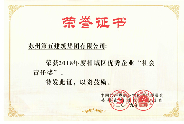 近日,中國(guó)共產(chǎn)黨蘇州市相城區(qū)委員會(huì)、蘇州市相城區(qū)人民政府表彰了2018年度優(yōu)秀企業(yè),集團(tuán)公司獲得“2018年度相城區(qū)優(yōu)秀企業(yè)社會(huì)責(zé)任”獎(jiǎng)。